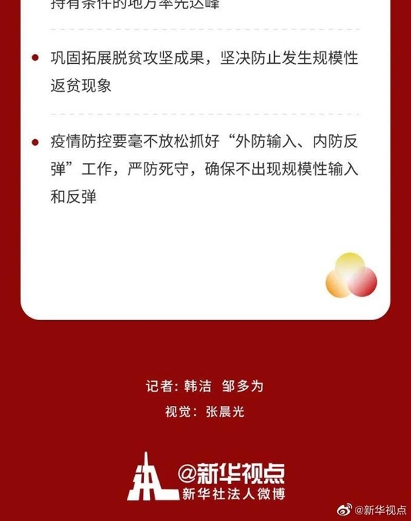 會(huì)議指出,在肯定成績(jī)的同時(shí),必須清醒看到,疫情變化和外部環(huán)境存在諸多不確定性,我國(guó)經(jīng)濟(jì)恢復(fù)基礎(chǔ)尚不牢固。明年世界經(jīng)濟(jì)形勢(shì)仍然復(fù)雜嚴(yán)峻,復(fù)蘇不穩(wěn)定不平衡,疫情沖擊導(dǎo)致的各類(lèi)衍生風(fēng)險(xiǎn)不容忽視。要增強(qiáng)憂(yōu)患意識(shí),堅(jiān)定必勝信心,推動(dòng)經(jīng)濟(jì)持續(xù)恢復(fù)和高質(zhì)量發(fā)展。要辦好自己的事,堅(jiān)持底線思維,提高風(fēng)險(xiǎn)預(yù)見(jiàn)預(yù)判能力,嚴(yán)密防范各種風(fēng)險(xiǎn)挑戰(zhàn)。要繼續(xù)高舉多邊主義旗幟,積極參與全球治理改革完善,推動(dòng)構(gòu)建人類(lèi)命運(yùn)共同體。